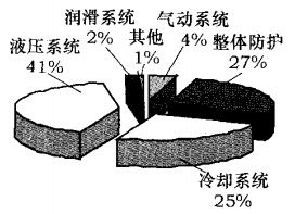 圖3所示為機(jī)床附屬裝置故障分布示意圖??梢钥闯黾庸ぶ行牡囊簤合到y(tǒng)占機(jī)床附屬裝置故障總數(shù)的41%,故障率最高,說明液壓系統(tǒng)是數(shù)控機(jī)床比較薄弱的環(huán)節(jié)。