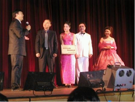 TCL金能電池公司董事長(zhǎng)郭春泰博士在TCL新春晚會(huì)上為饒老師頒發(fā)特別獎(jiǎng)?wù)?/p>